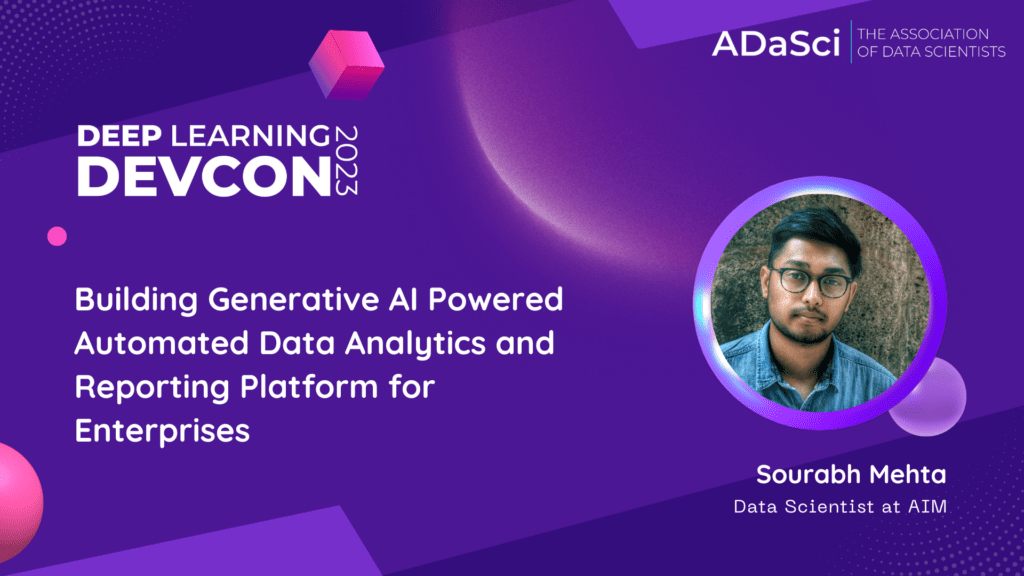 The Deep Learning DevCon (DLDC) was concluded with a highly informative and engaging workshop conducted by Sourabh Mehta, a prominent Data Scientist at AIM. The workshop focused on constructing a cutting-edge generative AI-powered data analytics and reporting platform for enterprises. Participants gained valuable insights into the potential applications of generative AI, its impact on various domains, and the transformative power it holds for enterprises.